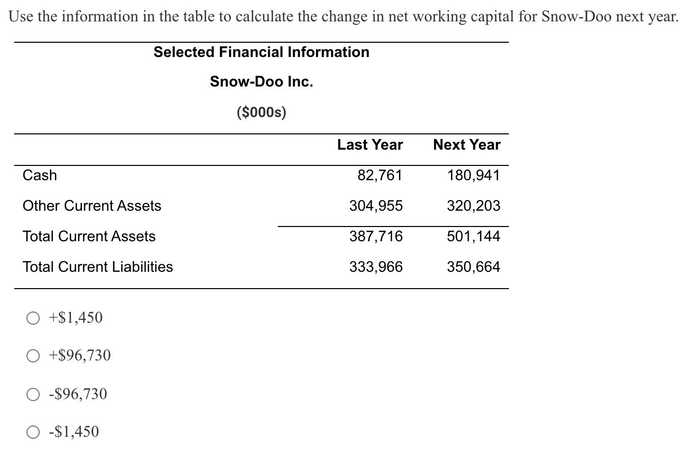 A business has current assets totaling 150000 and current liabilities totaling. 38500 29000. Net Working Capital Total Current Assets Total Current Liabilities.